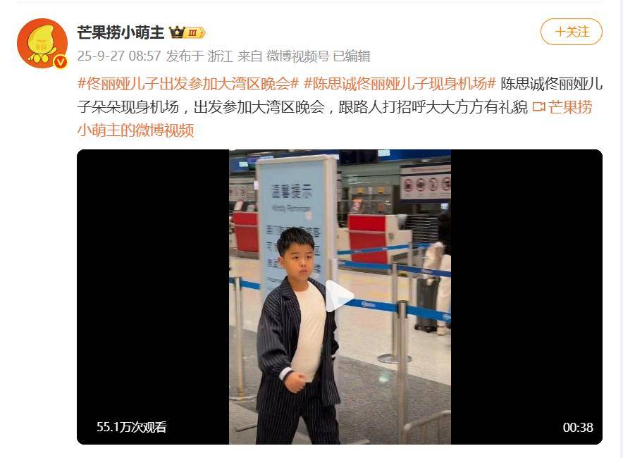 9月27日,佟丽娅9岁的儿子朵朵(晚会官宣名“陈奕橦”)现身机场前往澳门的画面,悄然在社交平台刷屏。身穿休闲装、主动向路人打招呼的他,被网友评价为“大方有礼貌”“气质沉稳得像个小老干部”。然而,这份超出年龄的淡定,却在他登上大湾区晚会舞台后,引发了一场关于“星二代资源”的争论。